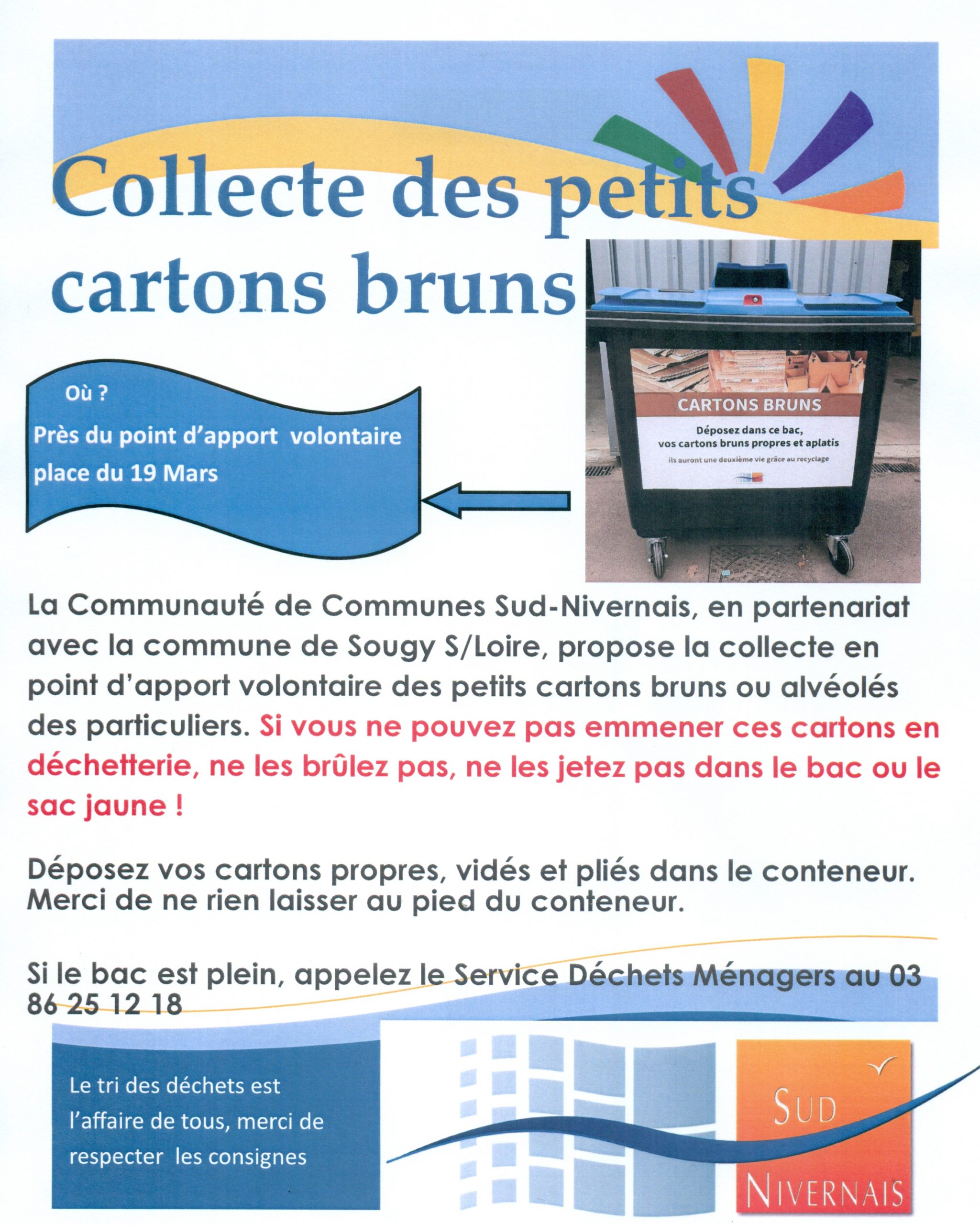 Pour rappel, seules 9 communes de la CCSN ont été conteneurisées à ce jour : Béard, Champvert, Devay, Druy-Parigny, La Fermeté, Sougy sur Loire, St Ouen sur Loire, Thianges, Verneuil.