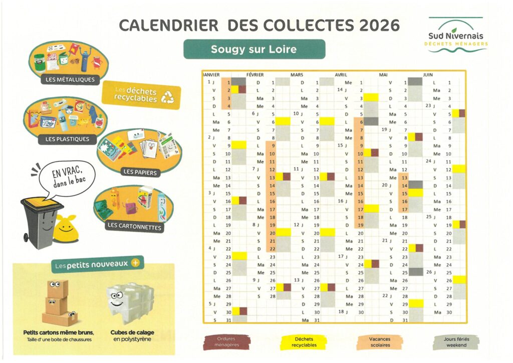 La gestion des déchets sur le territoire de notre Commune est gérée par la Communauté de Communes Sud Nivernais.