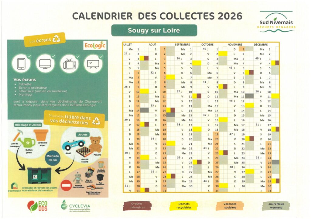 Calendrier de collecte 2026